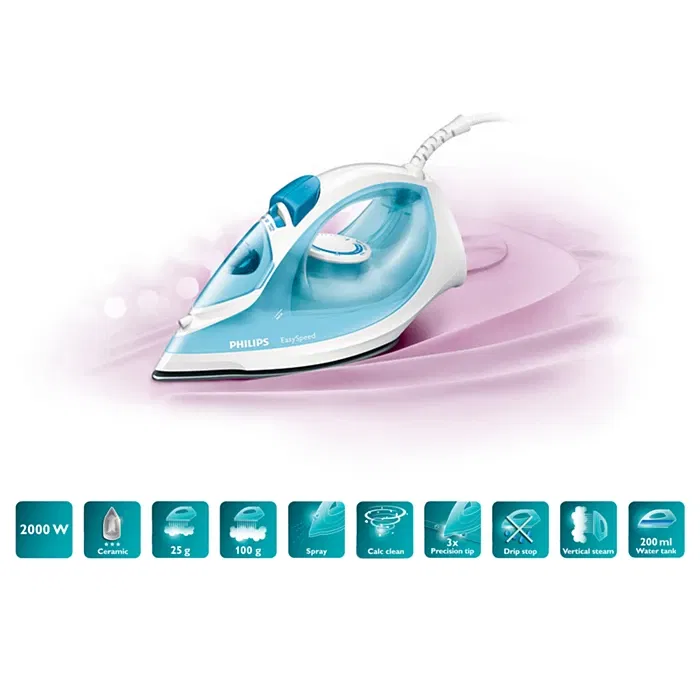 La punta de esta plancha Philips es precisa de 3 maneras: tiene una punta bien definida, una ranura para botones y un diseño elegante de la boquilla. La punta de precisión triple le permite llegar incluso a las zonas más difíciles, como alrededor de los botones o entre los pliegues.