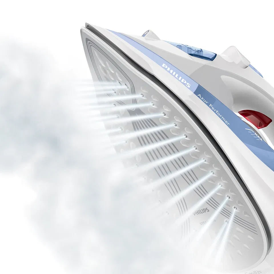 La plancha de vapor Azur Performer Plus de 2400 W se calienta rápidamente y ofrece un rendimiento potente para obtener resultados de planchado óptimos.