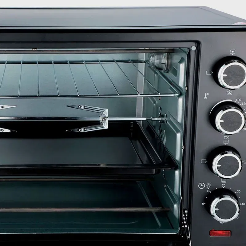 ¡Desde ahora preparar tus mejores recetas va a ser mucho más fácil! Conseguí resultados riquísimos en poco tiempo con el horno eléctrico de 70 litros que por su potencia y diversas funciones logra que tu tiempo en la cocina sea aún más provechoso, sin perder la posibilidad de preparar deliciosas y elaboradas recetas. Cuenta con 6 funciones de cocción preseteadas, luz interior para que no pierda calor y temporizador de 60 minutos con alarma sonora. ¡Y con si fuera poco, incluye accesorios para cocinar al spiedo!