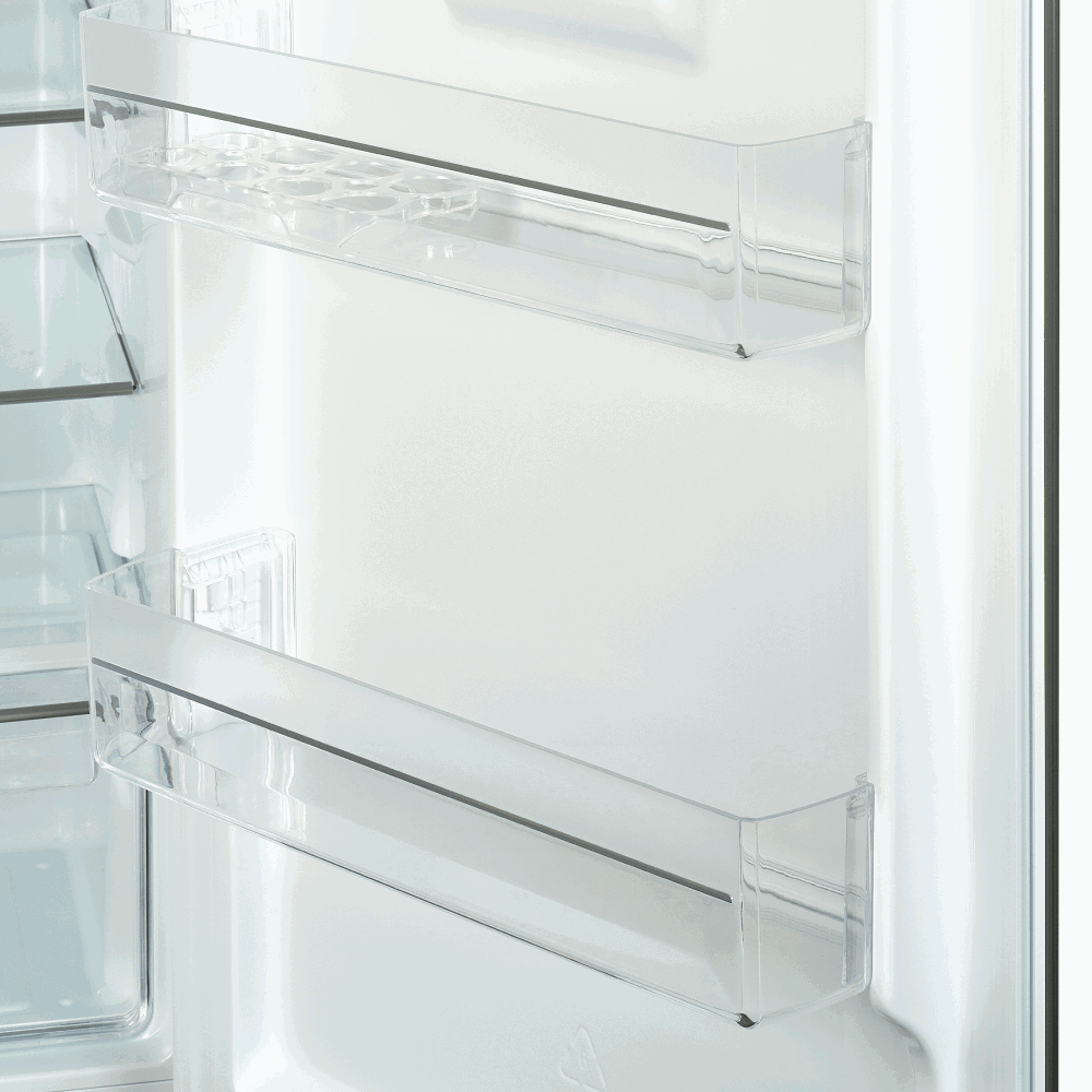 Su diseño en acero inoxidable se integra perfectamente a la cocina moderna, mientras que el dispenser de agua en la puerta, el Twist Ice Maker, los estantes de vidrio templado con bordes antiderrame y la iluminación LED interior brindan practicidad y confort de uso.