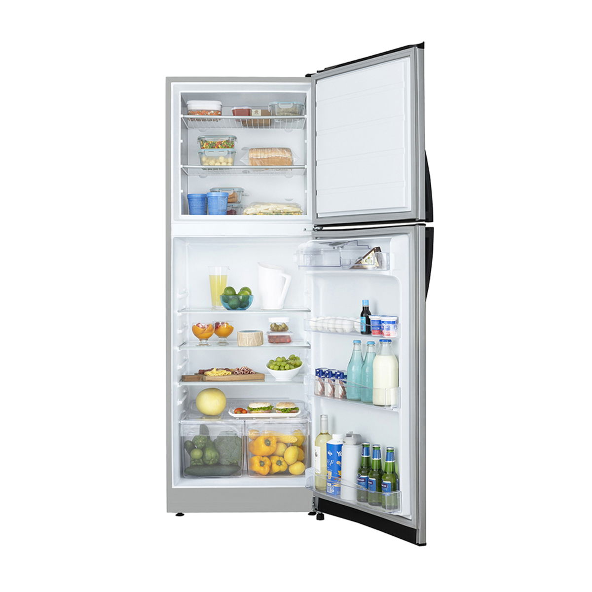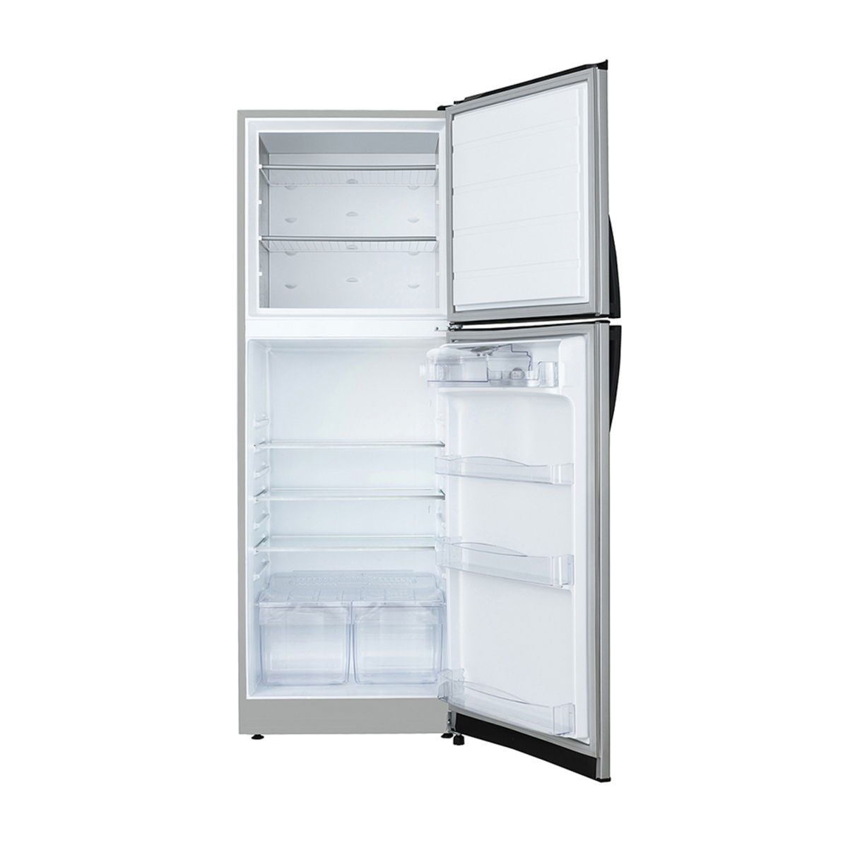 Heladera con freezer Cíclica. Eficiencia Energética A. Color Gris Aluminium. Freezer XXL. Gas ecológico R600a. Capacidad bruta 396 litros. Capacidad neta 392 litros. Deshielo manual. Dispenser de 2 litros de capacidad. Estantes regulables en altura en freezer y refrigerador. Anaqueles en contrapuerta para botellas y alimentos regulables en altura. Doble cajón para frutas y verduras. Cubeteras. Huevera. Apertura de puerta controlada. Control de temperatura interior. Luz LED. Origen Argentina.