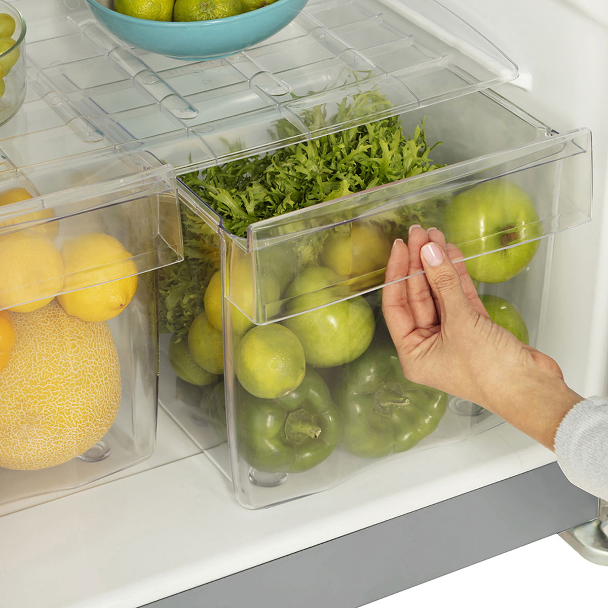 Cajón doble especial para frutas y verduras que ayuda a mantener su frescura y calidad, proporcionando las condiciones adecuadas de temperatura y humedad para su conservación prolongada.