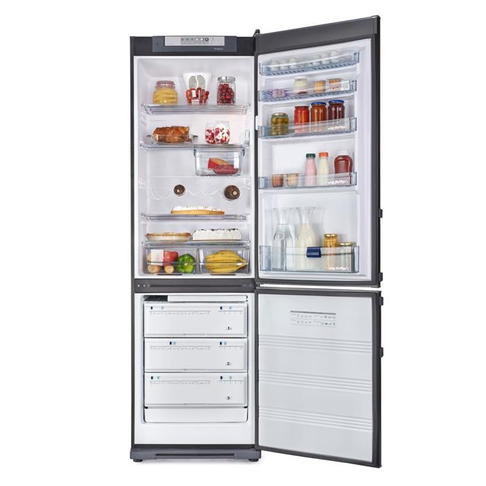 La heladera KGB-4094/7 con dos motores tiene más durabilidad y rendimiento. Control independiente de temperatura de heladera y freezer para un consumo más eficiente. Además la Función Super Frost para freezar todo más rápidamente; y la Función Vacaciones, que permite dejar en funcionamiento el freezer, apagar la heladera y ahorrar mucha energía. Freezer abajo con tres cajones para mayor comodidad y puertas reversibles, que hace posible invertir el sentido de apertura de la puerta ¡la Heladera se adapta a tu espacio!. Con Tecnología Dynamic System, frío homogéneo en cada parte de la heladera.