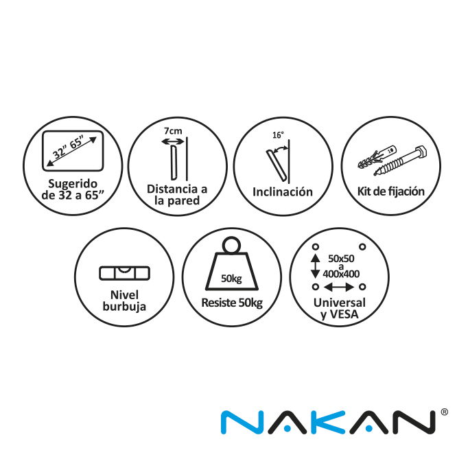 Universal y VESA: 50x50 a 400x400.