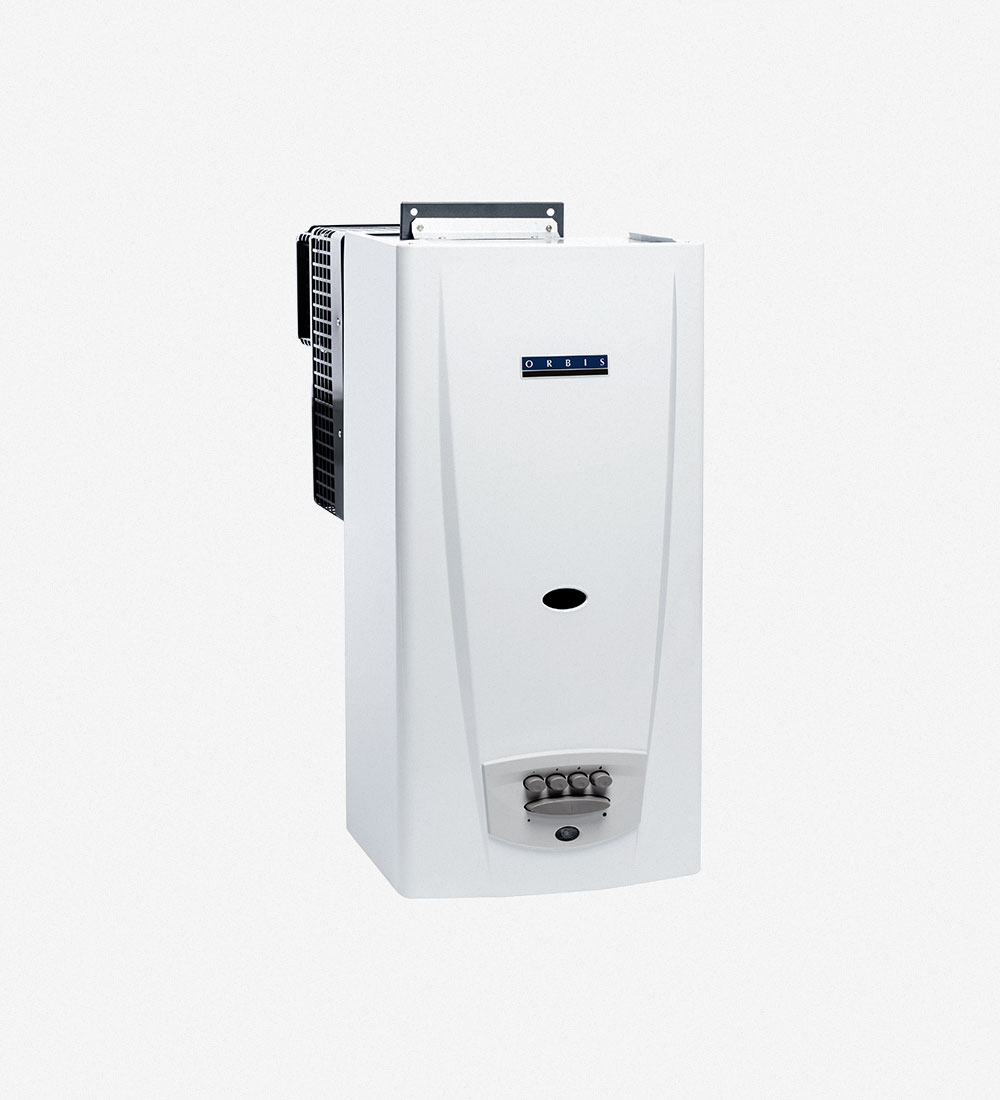 Calefón tiro balanceado Orbis salida distinta. Tipo de válvula: Botonera. Encendido: Electrónico. Capacidad (L/min): 14. Medidas Alto (mm): 727, Ancho (mm): 370 Profundidad (mm): 250, Ancho Tiraje (mm): 205, Alto Tiraje (mm): 395. Color: Blanco Tiraje: Balanceado Con sensor de fuga de gas: Sí