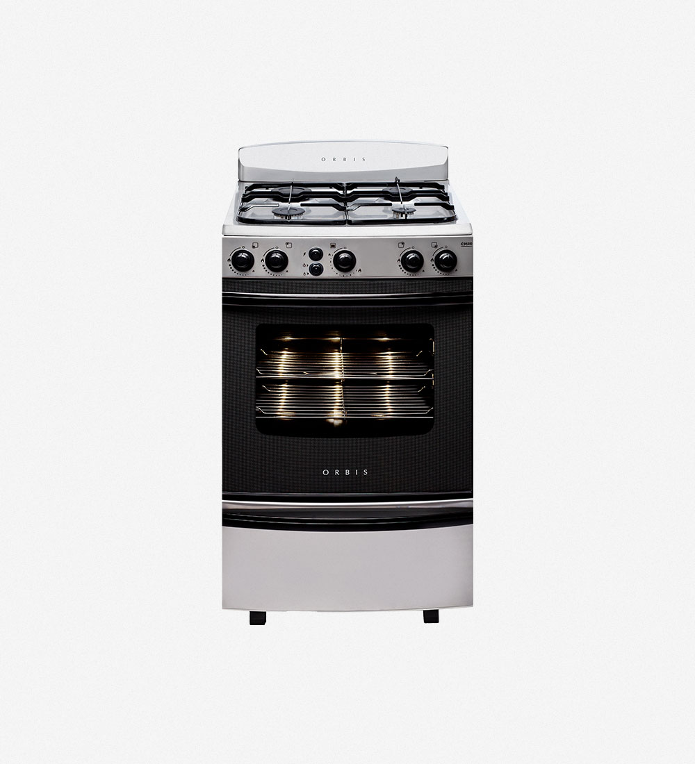 Cocina de 55 cm con luz y encendido electrónico. Color acero 958AC3 Orbis