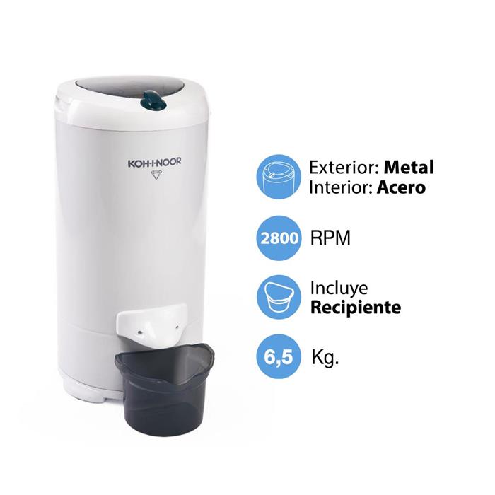 El secarropas centrífugo B-665/2 con tambor de acero y camisa exterior de metal. De 6,5 kg de capacidad y con 2800 RPM (revoluciones por minuto), tiene ¡Más del triple de revoluciones que un lavarropas! *. ¡Con 3 minutos secás la ropa de algodón y ahorrás mucho tiempo de secado! Ocupa muy poco espacio, con un diámetro de 34,3 cm. Incluye recipiente recolector de agua para mayor comodidad y puede usarse con todo tipo de prendas: lana, algodón, toalla, jean, lycra, sintética, polyester, etc.