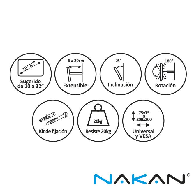 Soporte extensible giratorio y con inclinación, de 10" a 32" SPL-570e Nakan